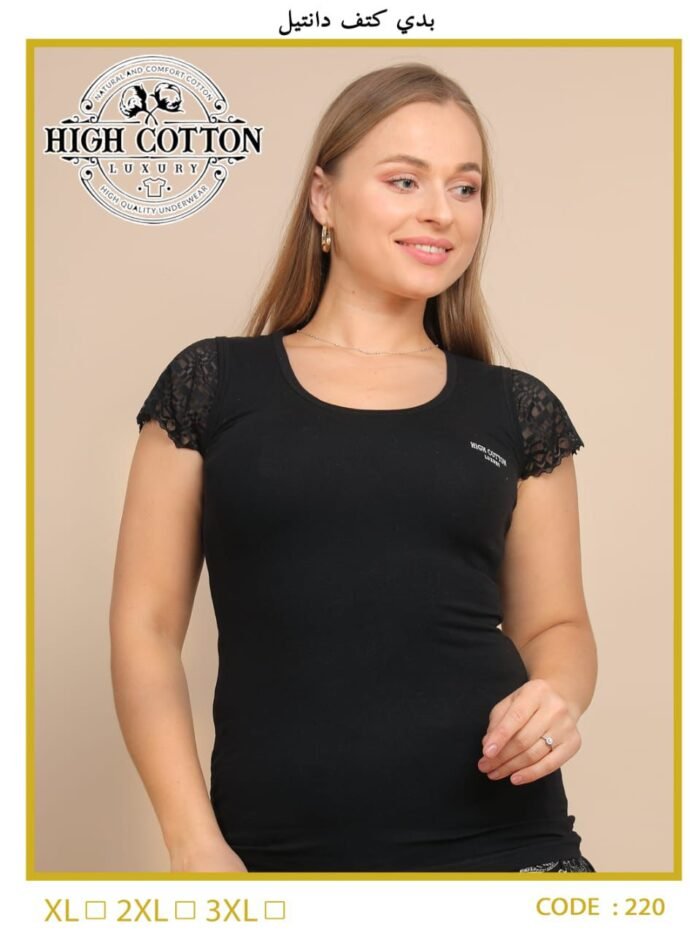 توب بكم قصير مزين بأكمام دانتيل أنيقة لإطلالة أنثوية عصرية. مصنوع من 95% قطن طبيعي و5% ليكرا ليمنحك راحة مثالية ومرونة تدوم طوال اليوم. تصميم ناعم يناسب الإطلالات اليومية والكاجوال