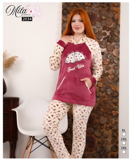 بيجامة حريمي شتوي قطيفة تقيلة – Umbrella كود 2034